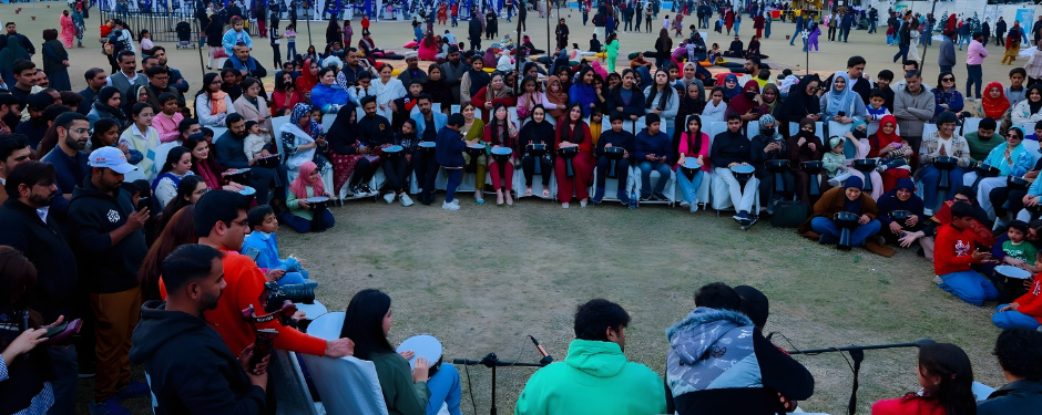 Drum Circle: An energetic and interactive drum circle session conducted by Drum Circle Pakistan encouraged participants to engage through rhythm and music.