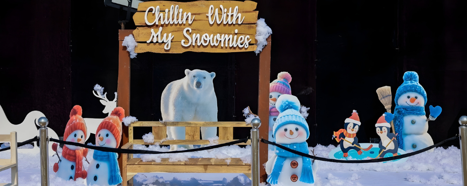 Snow Corner: A dedicated snow corner featured artificial snow along with decorative penguins, snowmen, and polar bears, creating a picturesque space that was especially enjoyed by families and children.